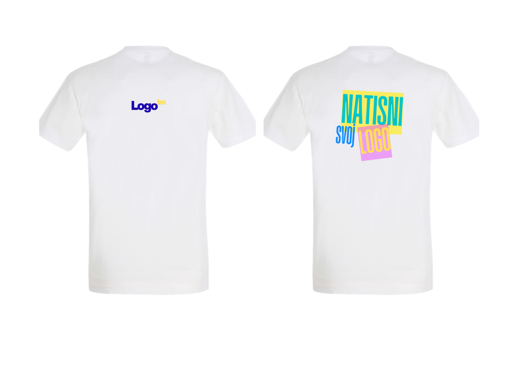 Personalizirana majica s tiskom malega logotipa spredaj + velikega zadaj - UNISEX